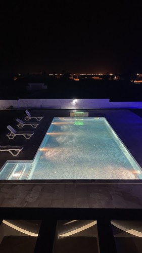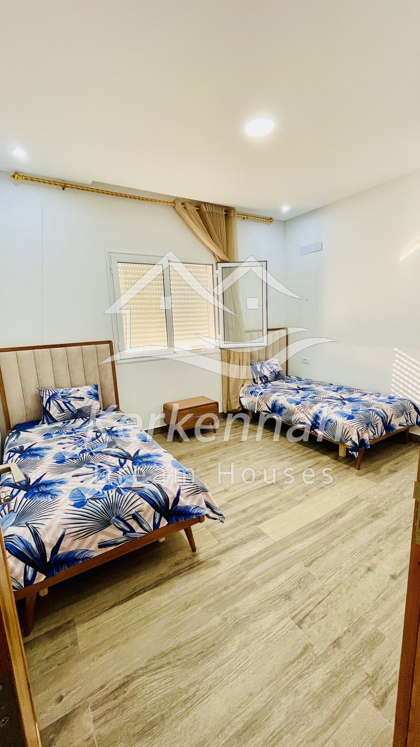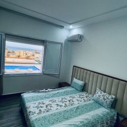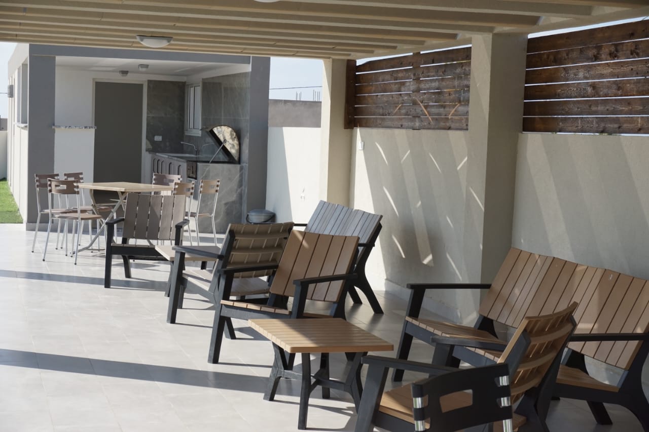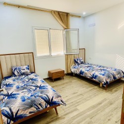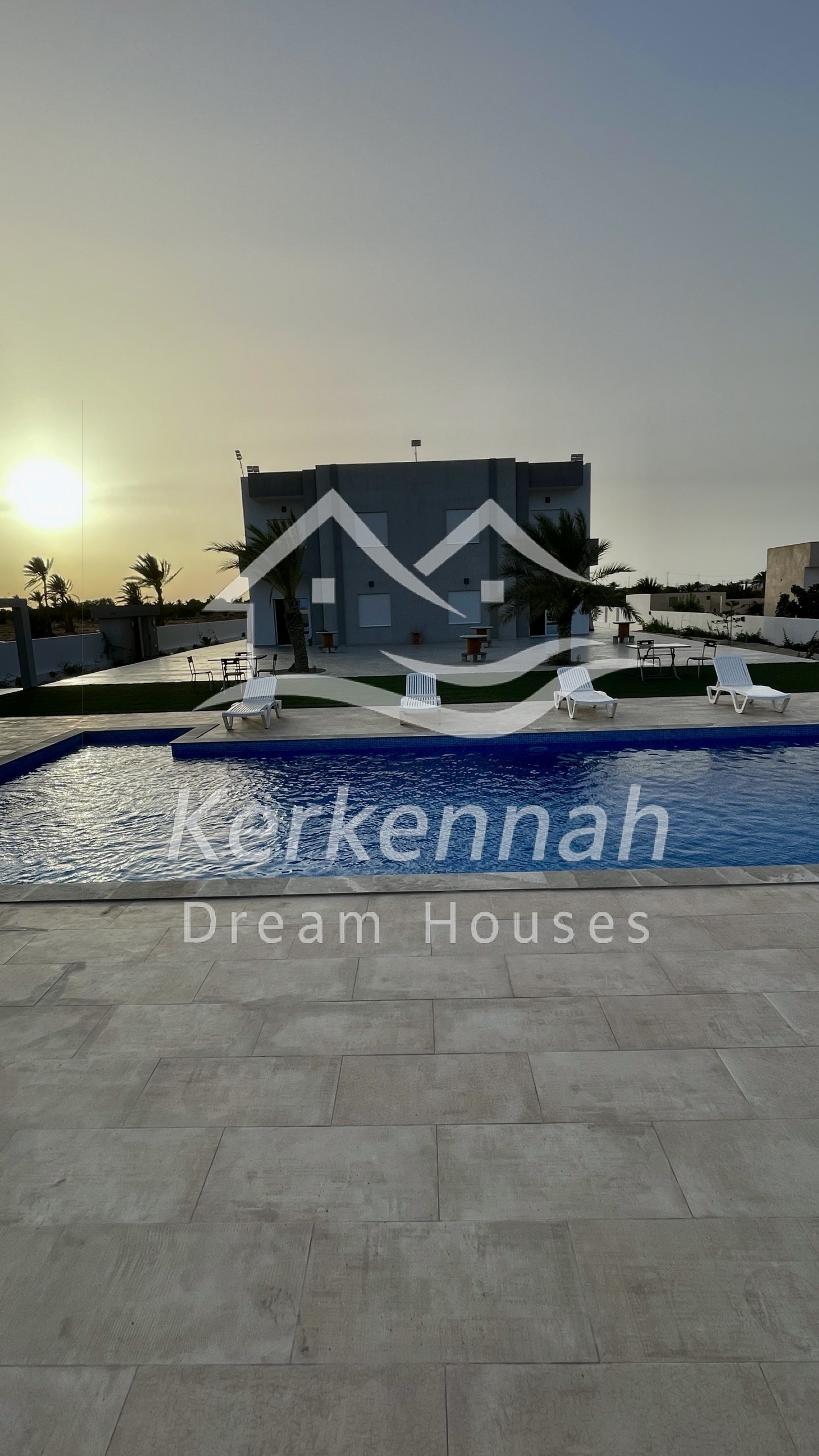 Chaque unité est soigneusement aménagée avec deux chambres et un salon lumineux, s’ouvrant sur une grande terrasse extérieure. Profitez d’une magnifique piscine de 12m x 5m et d’un agréable espace ombragé sous pergola pour vos moments de partage et de relaxation.